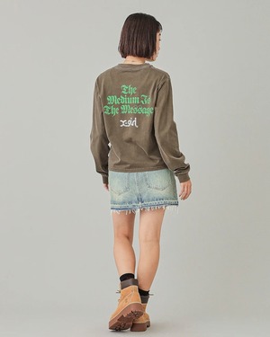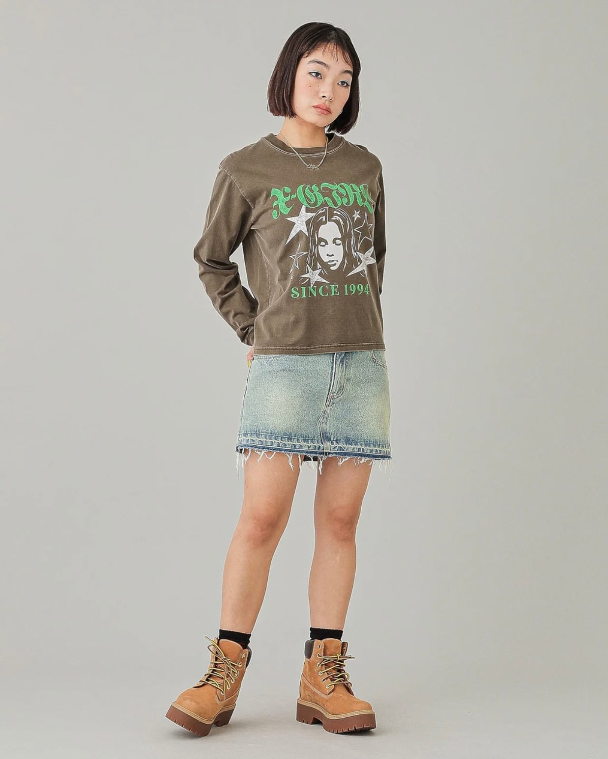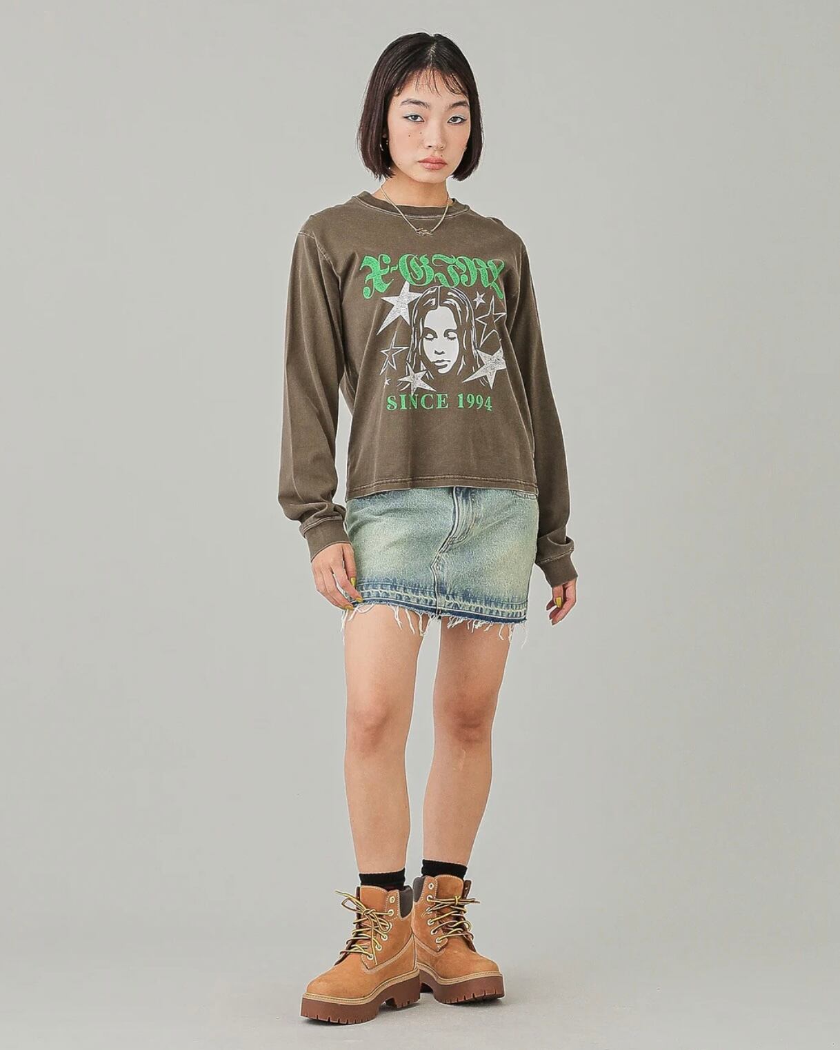 【X-girl】STAR AND FACE LOGO FADED L/S TEE / BROWN【エックスガール】