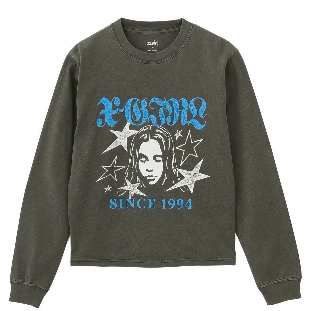 【X-girl】STAR AND FACE LOGO FADED L/S TEE / BLACK【エックスガール】