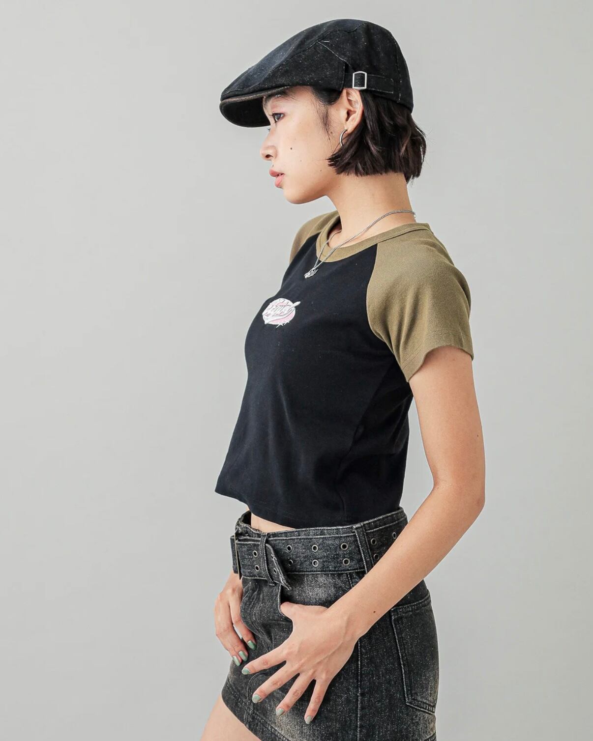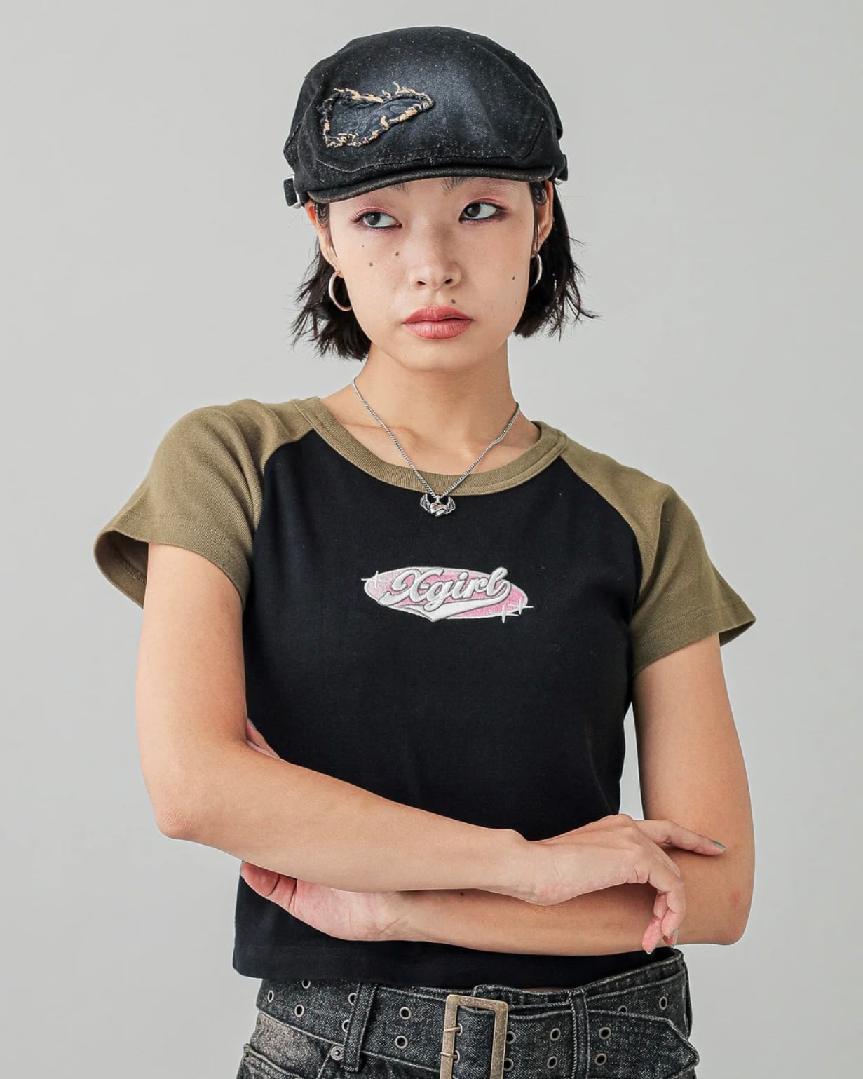 【X-girl】OVAL LOGO EMBROIDERY RAGLAN S/S BABY TEE / LtPINK【エックスガール】