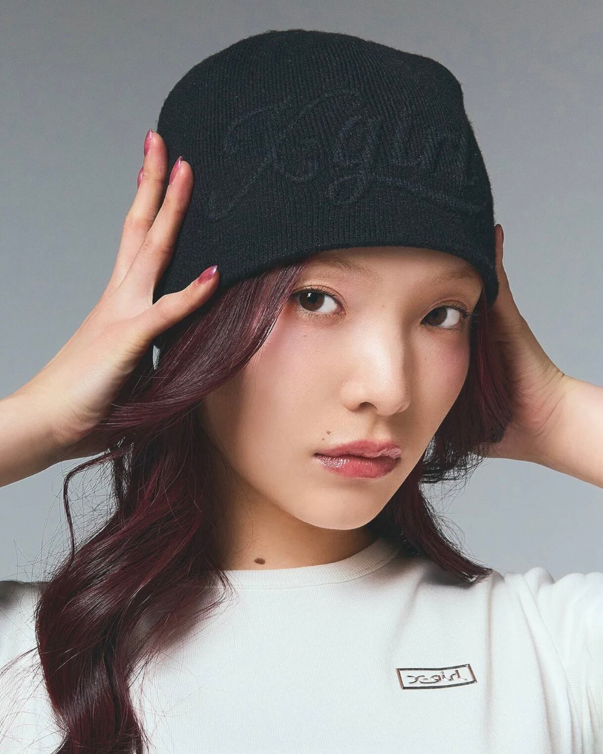 X-girlロゴをエンボスで施したシングルビーニー。