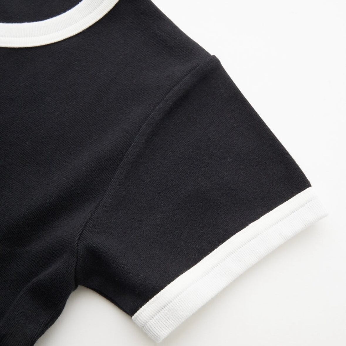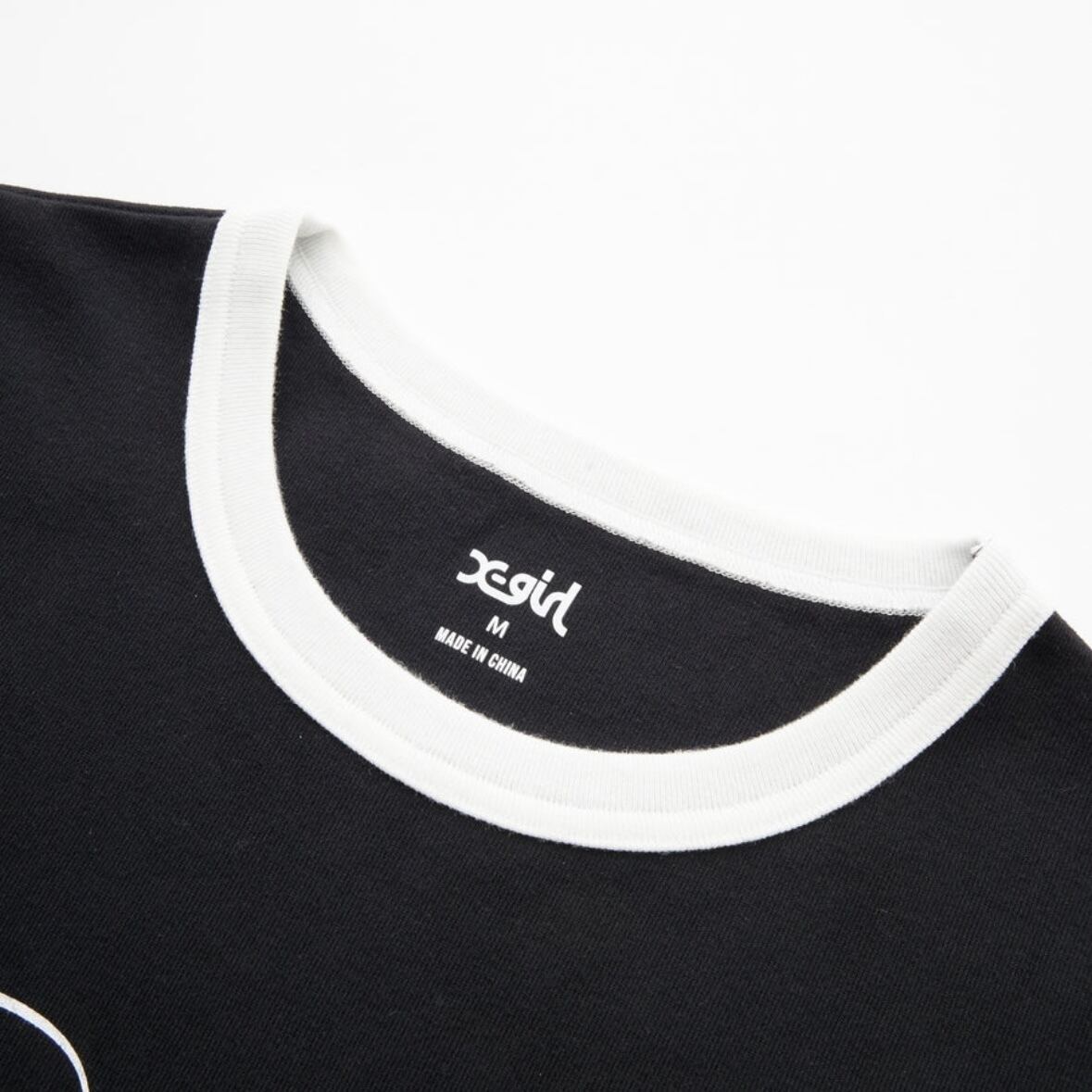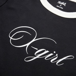 【X-girl】SCRIPT LOGO DRAWSTRING RINGER BABY TEE / BLACK【エックスガール】