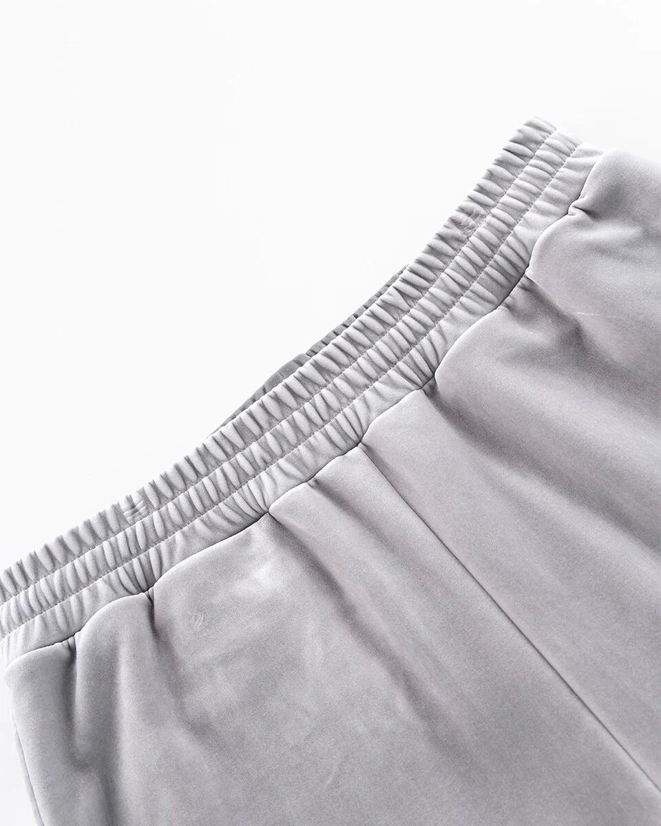 光沢のある肉厚なベロア生地を採用したトラックパンツ。