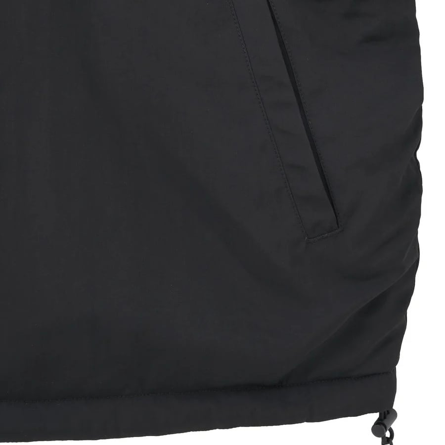 裏面はキルティング仕様で、胸元にミルズロゴのワンポイント刺繍入り。