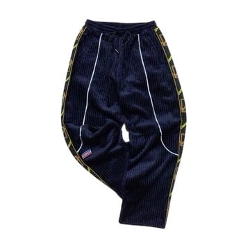 リフレクターテープとサイドのジャガードテープが特徴的なジャージパンツ