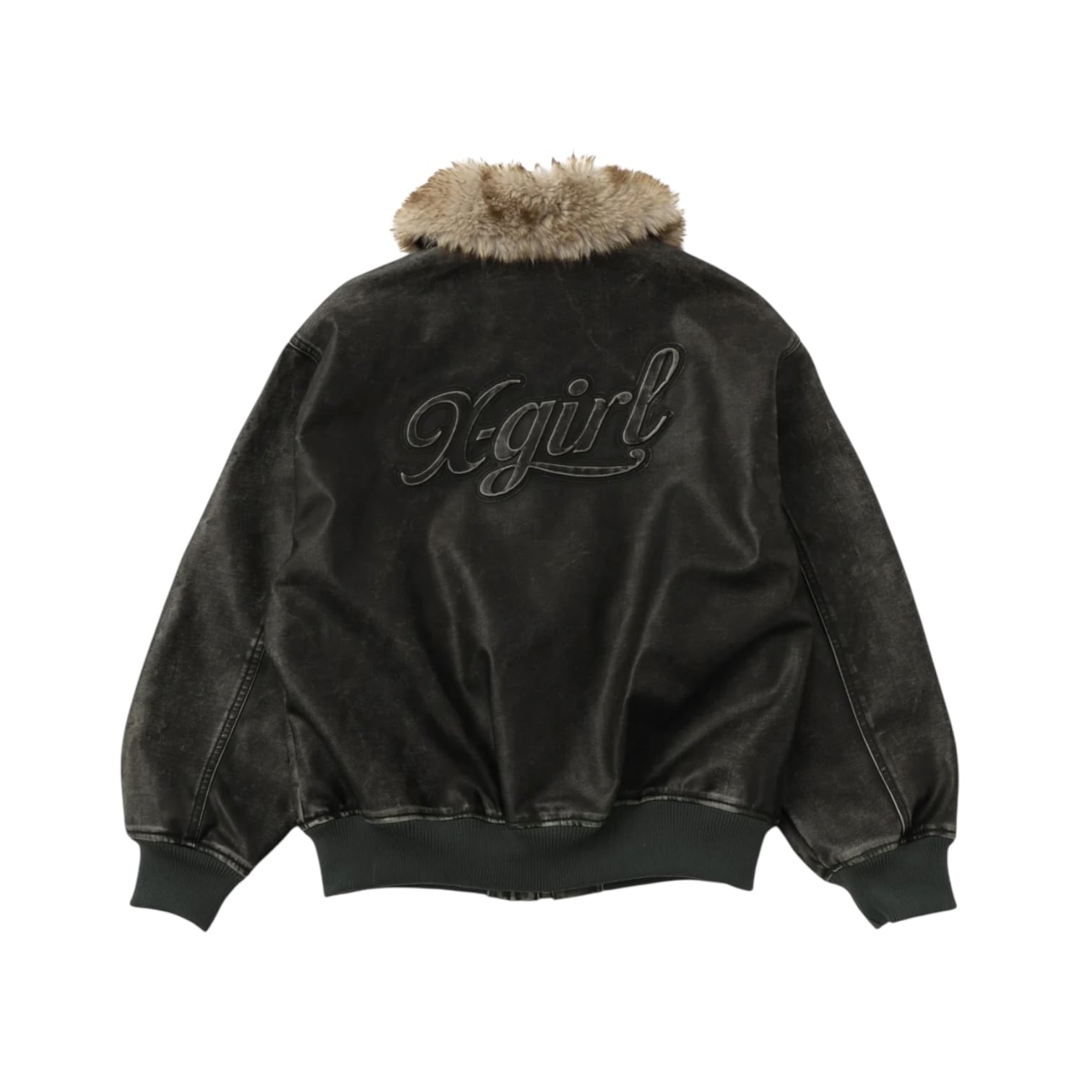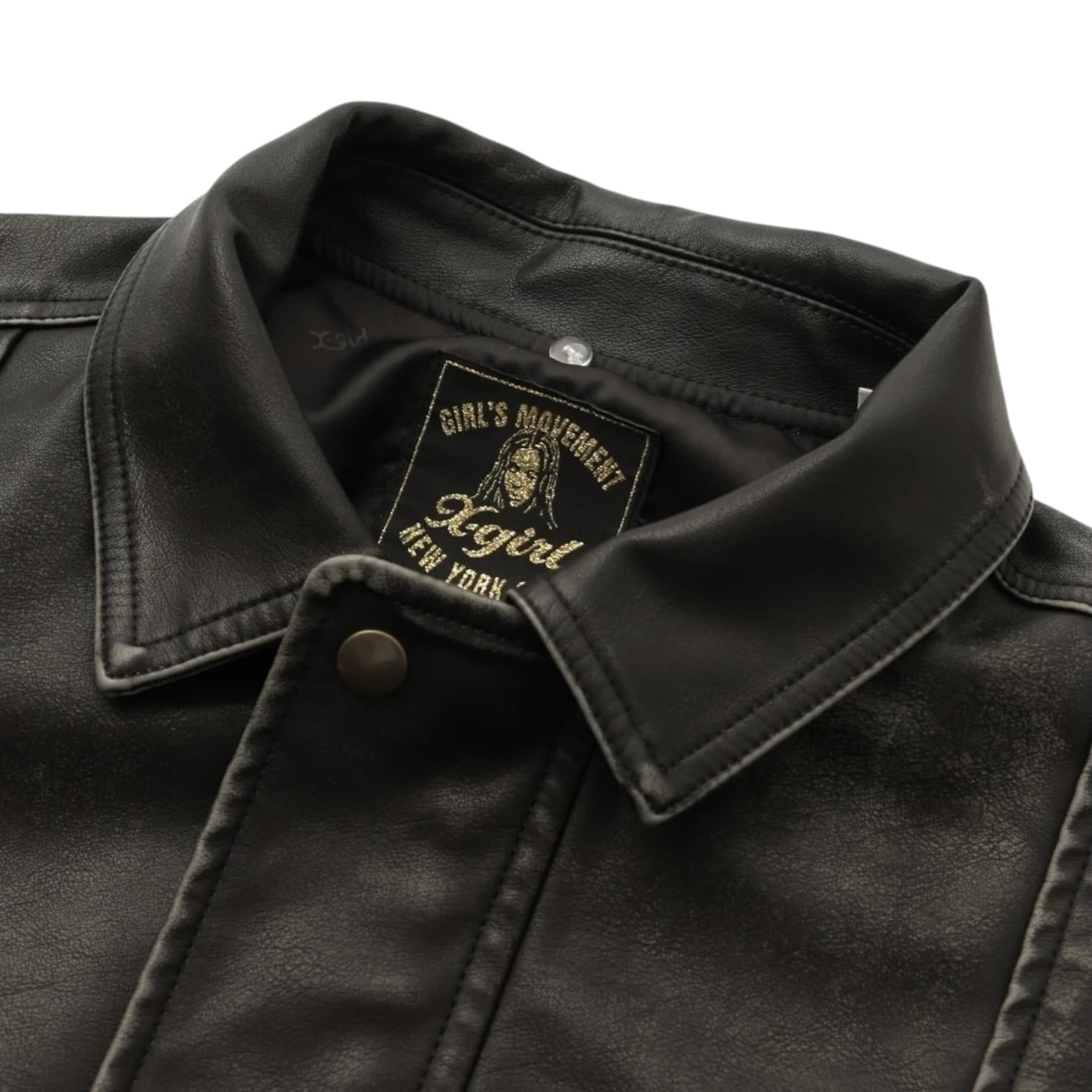 【x-girl】EMBOSSED LOGO PATCH DISTRESSED FAUX LEATHER JACKET