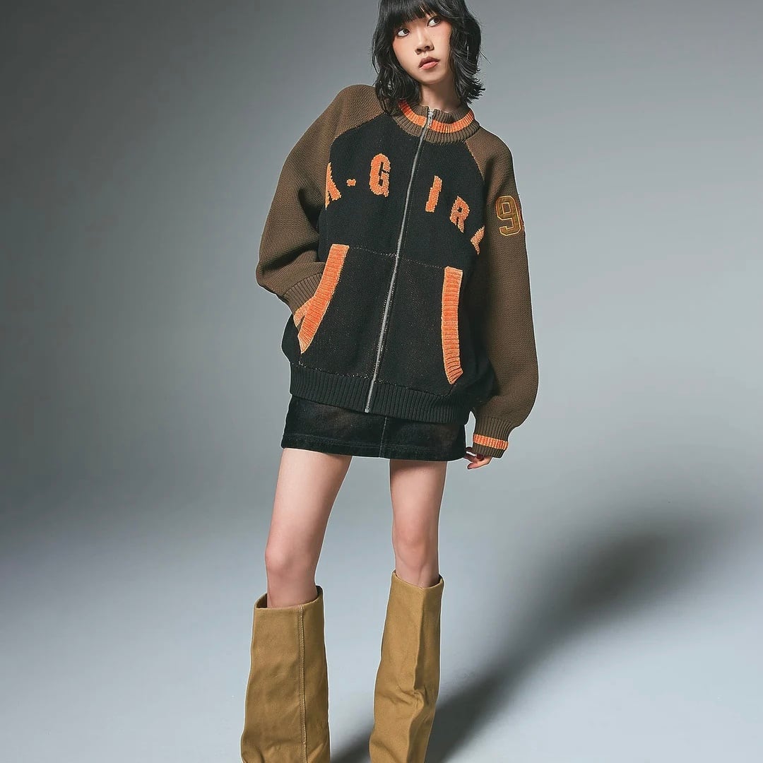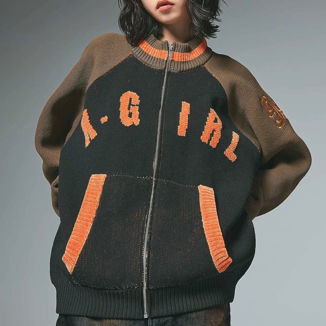 【x-girl】STADIUM KNIT JACKET【エックスガール】