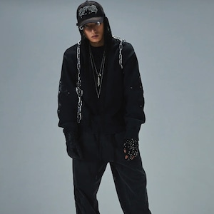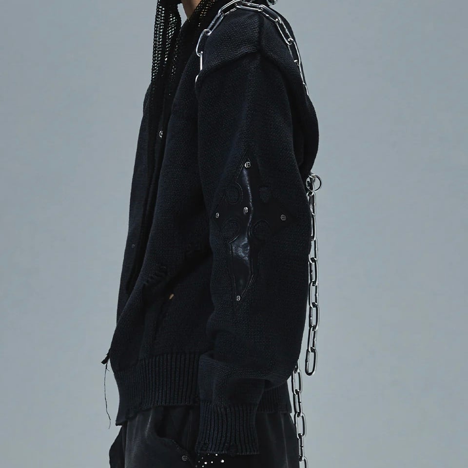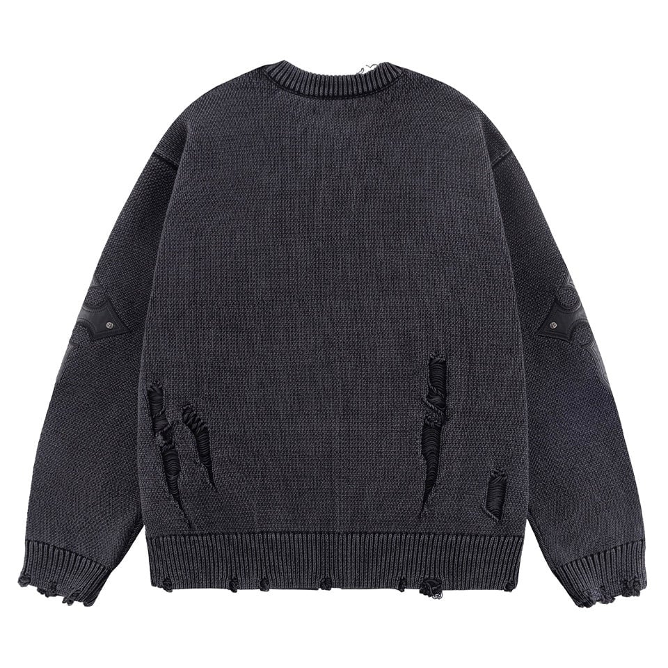 【supplier】Distressed Cross Leather Patch Crew Knit V2【サプライヤー】