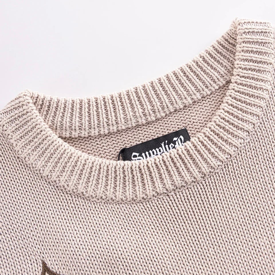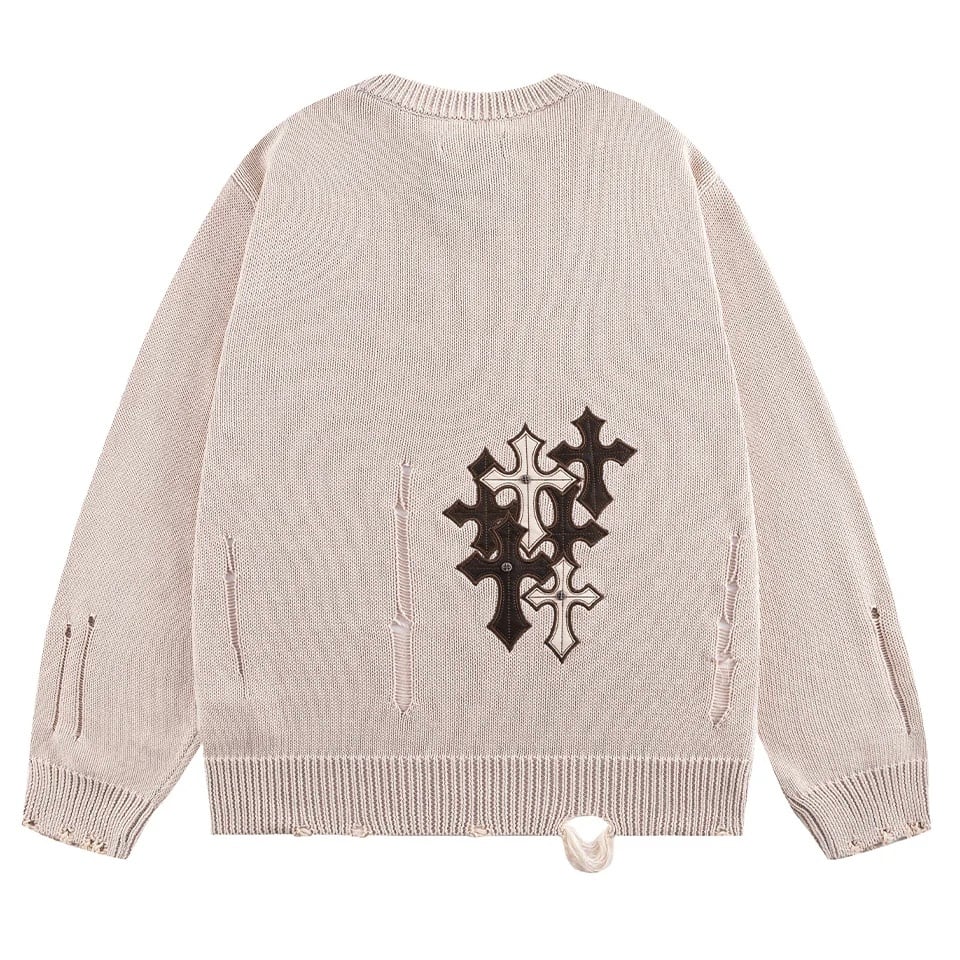 【supplier】Distressed Multiple Cross Leather Patch Crew Knit【サプライヤー】