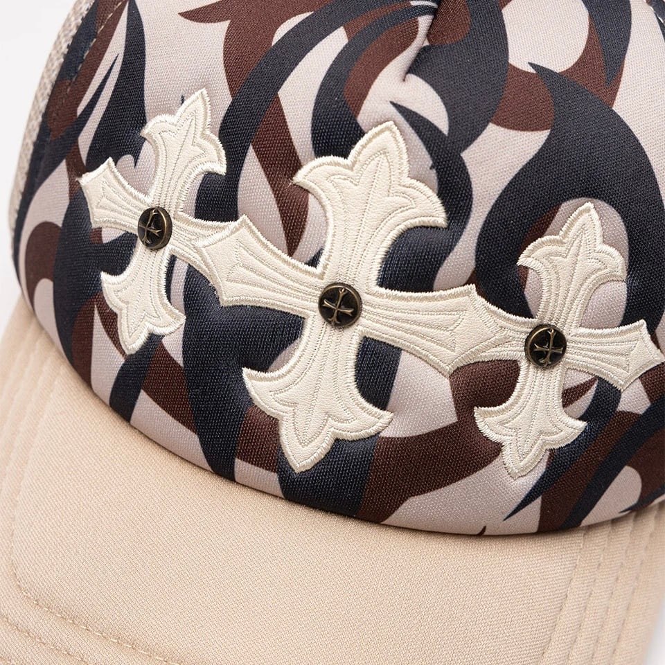 【supplier 】Tribal Camo Cross Leather Patch Mesh Cap