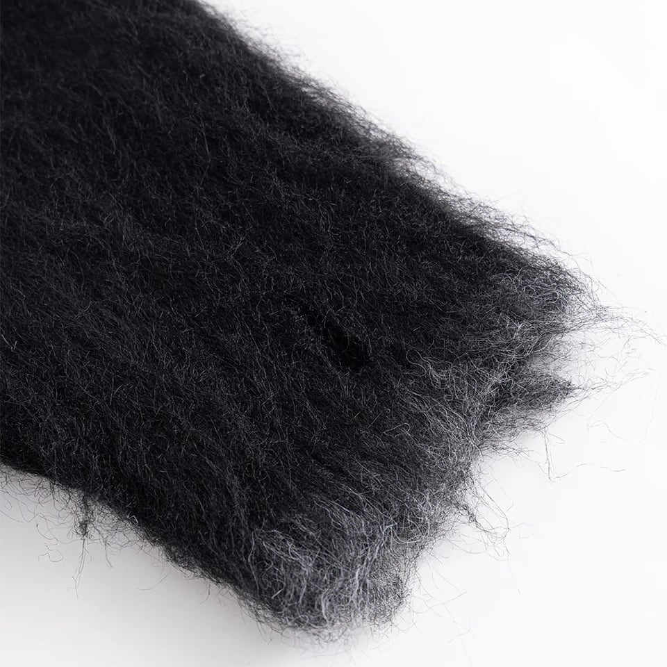 5Gのシャギー糸を採用して編み立てたクルーニット。