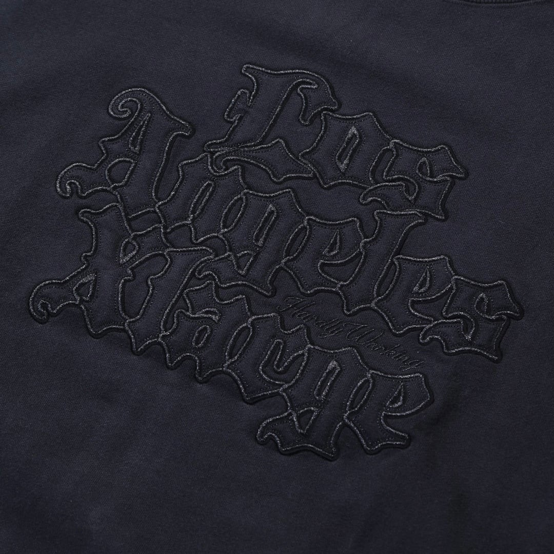 ・フロントの大きく刺繍したOLD ENGLISH調のロゴがポイント