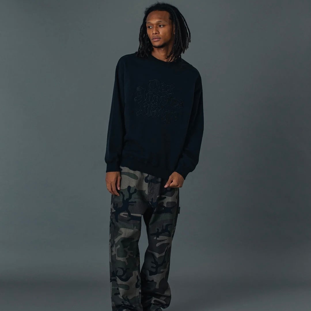 ・さりげない同色ロゴが特徴なクルーネックスウェット