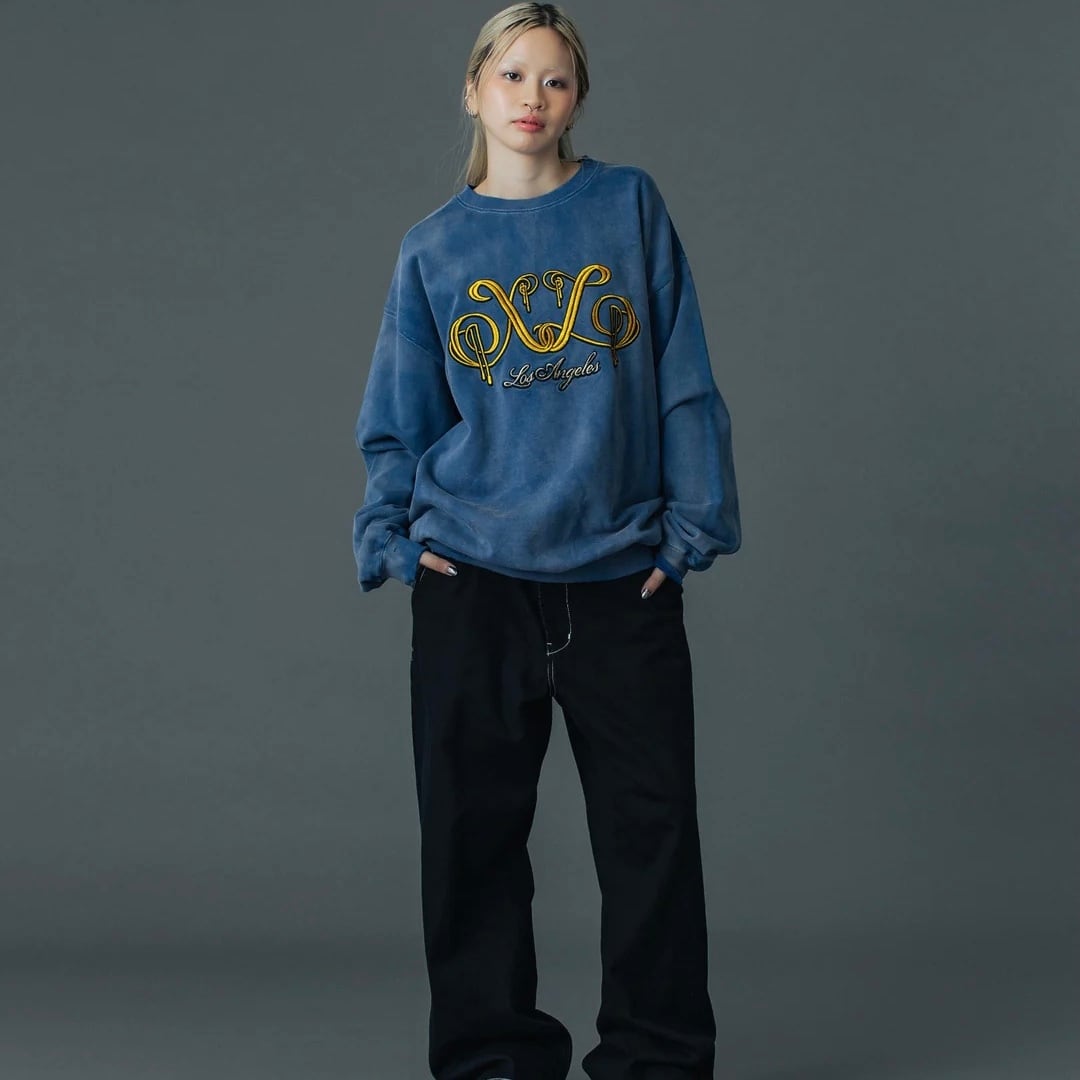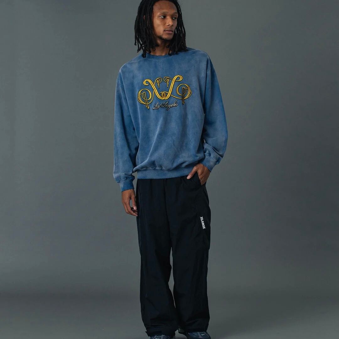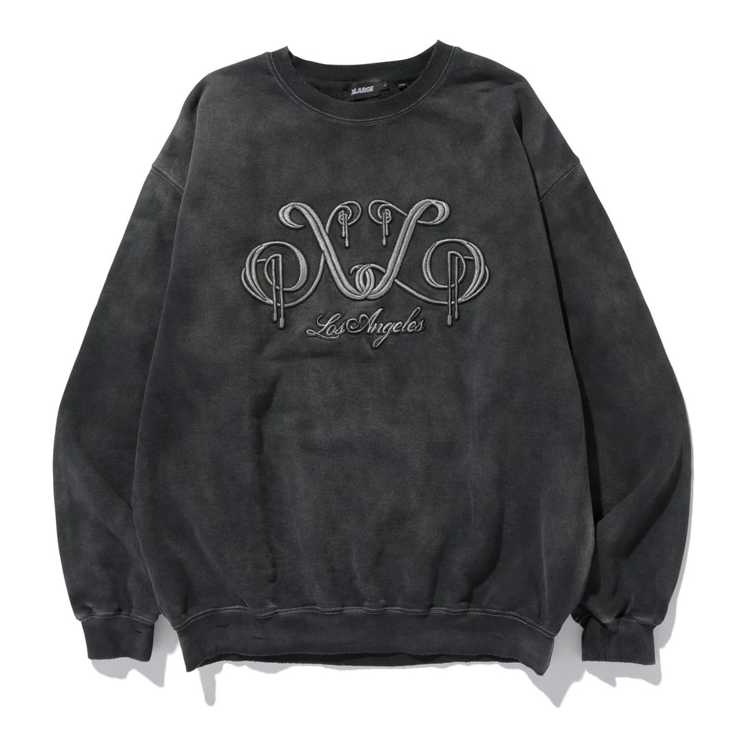 【XLARGE】EMBROIDERED BLEACHED CREWNECK SWEATSHIRT【エクストララージ】