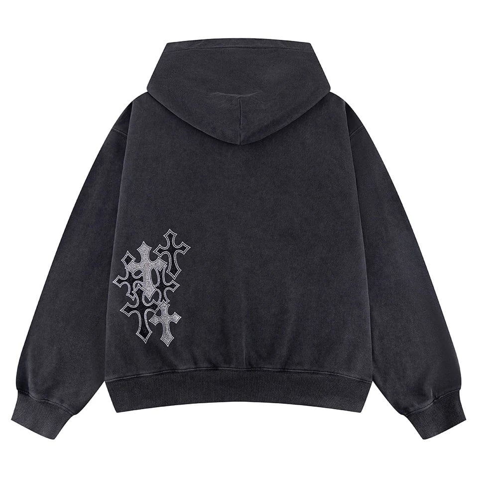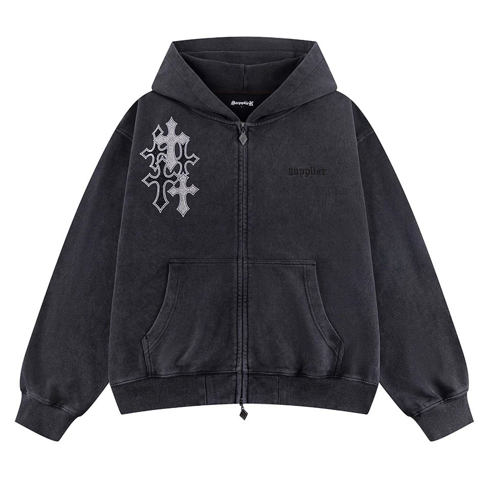 【supplier】Multiple Cross Rhinestone Zip Hoodie【サプライヤー】