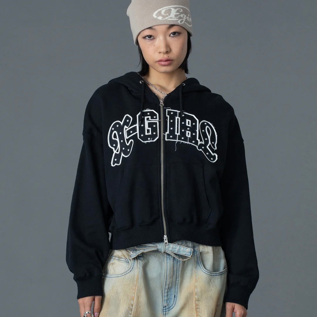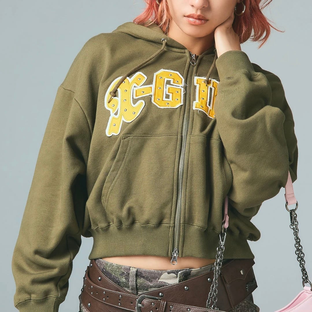 【x-girl】STUDDED LOGO ZIP UP SWEAT HOODIE【エックスガール】