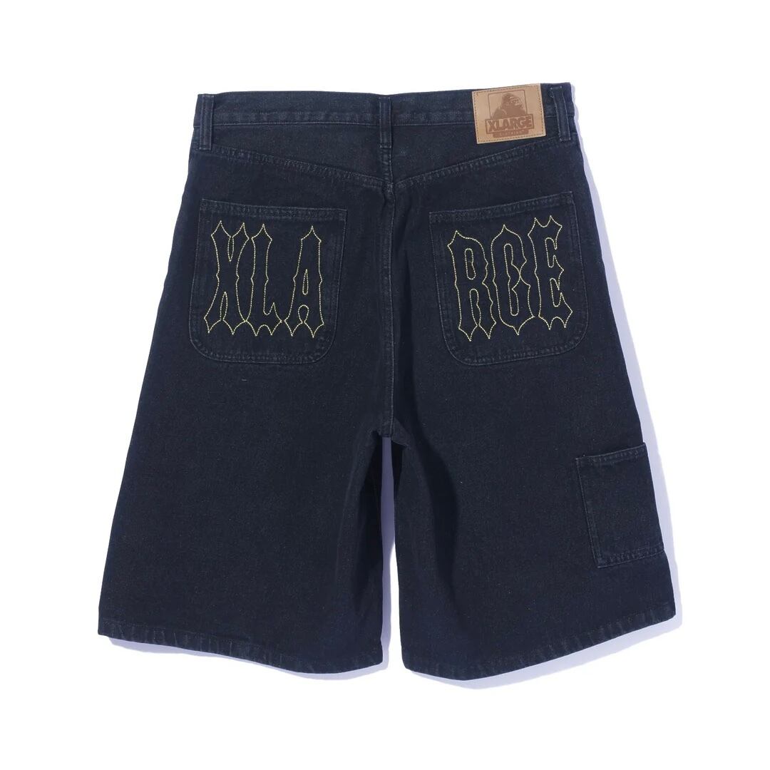 MODEL:34inch 身長:172cm(OLIVE) 185cm(INDIGO) 【ディテール】 ・ステッチデザインが目を惹くデニムショーツ ・バックのステッチで施したロゴがポイント ・ロゴパッチも配置 ・透け感:なし ・裏地:なし ・生地の厚さ:普通 ・伸縮性:なし ・シルエット:スタンダード 【XLARGE(エクストララージ)】
