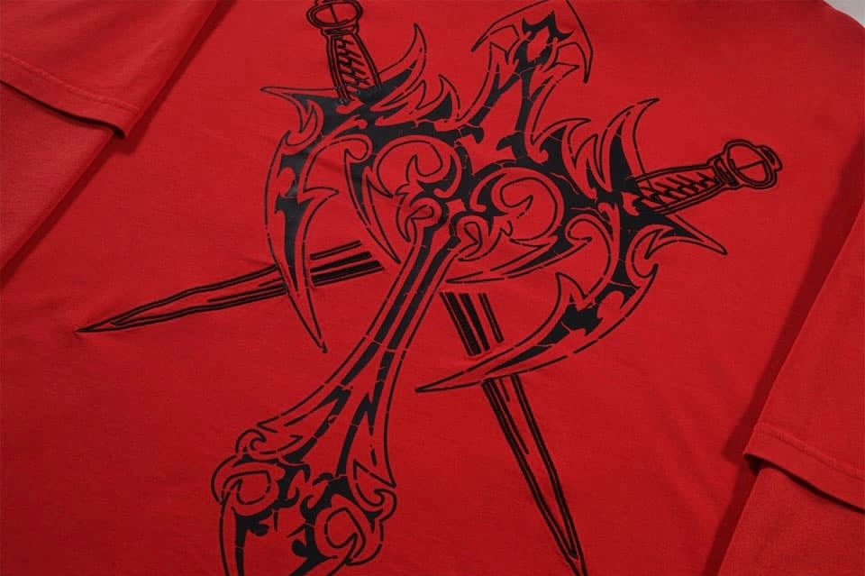 【UNKNOWN LONDON】2 IN 1 SELF CRACKED CROSS AND DAGGER GRAPHIC PRINT HOODIE