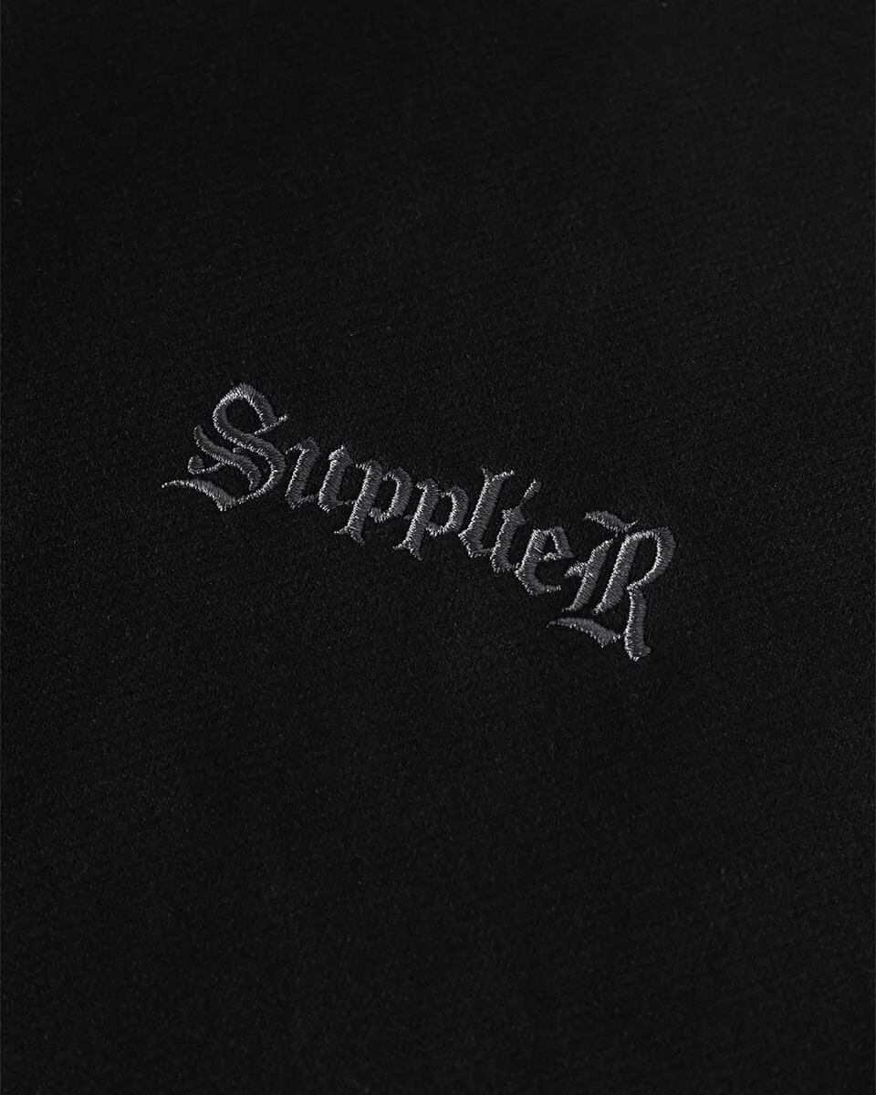 SUPPLIERのシグネチャーデザインの一つである""CROSS LOGO""を刺繍とスタッズ、キャラメルコーデュロイの組み合わせで表現。