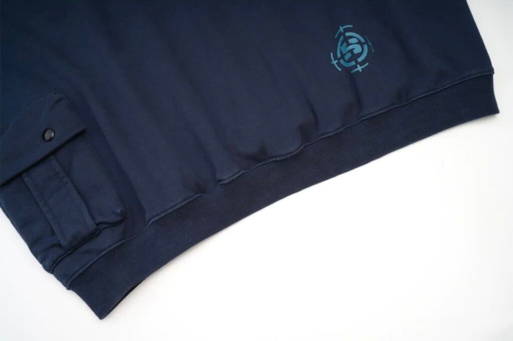 身頃にミリタリーテイストのあるマチ付きのフラップポケットを複数配置しました。