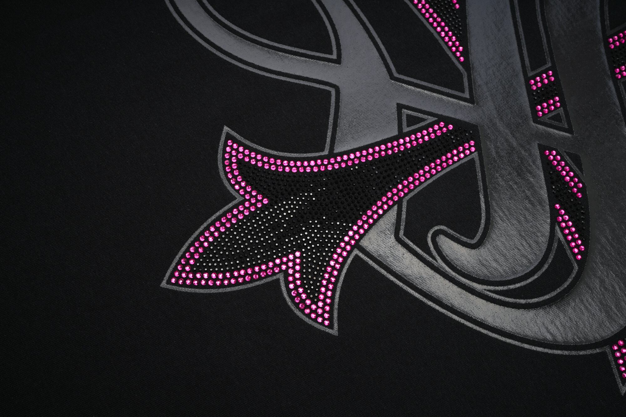 今季はクロス部分のアウトラインに大きさとカラーを変えたラインストーンを配置することでグラフィックがより際立ちインパクトのある仕上がりになりました。